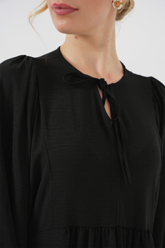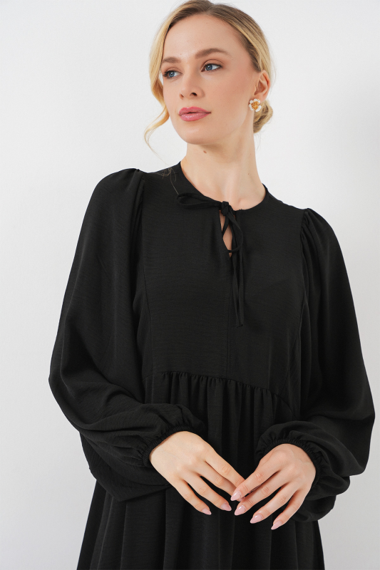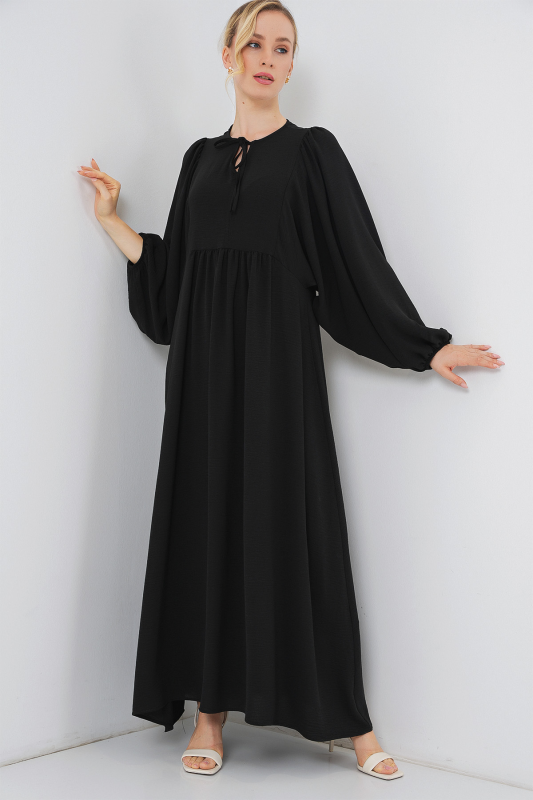 Elegant Black A-Line Modest Dress - 100% POLYESTER